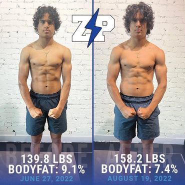 When Evan came to ZPC he was undersized and underweight but filled with determination and prepared to grind. Over the course of 8 weeks Evan put on 18.4 lbs. and lost 1.7% body fat..